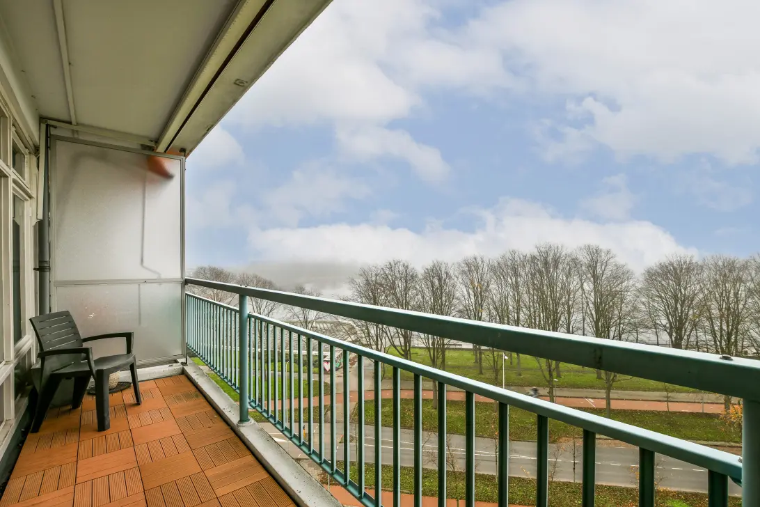The 7 m² balcony spans the full width of the apartment. Here you can enjoy views of the Sloterplas and the surrounding greenery. A wonderful place to unwind after work, with sun from the afternoon until sunset.