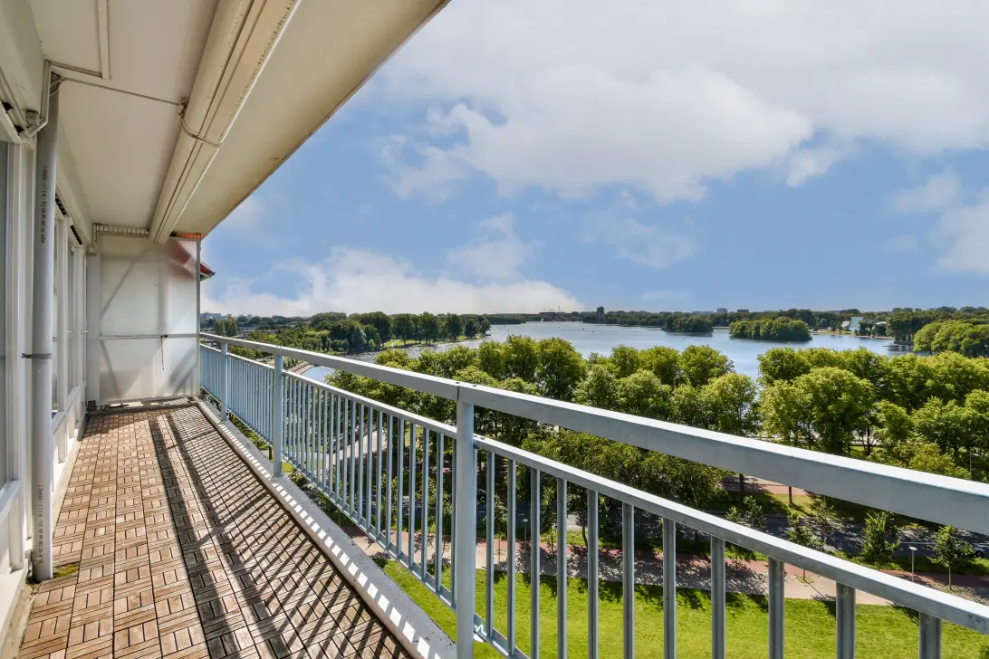 Het appartement beschikt over een riant balkon op het westen van circa 13m2 en is gelegen over de gehele breedte van het appartement. Het biedt prachtig uitzicht over de Sloterplas en de groene omgeving en is dan ook de ultieme plek om in het zonnetje te genieten na je werk of in het weekend. Het balkon is voorzien van zonwering (op maat gemaakt en elektrisch bedienbaar).