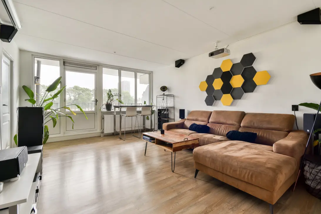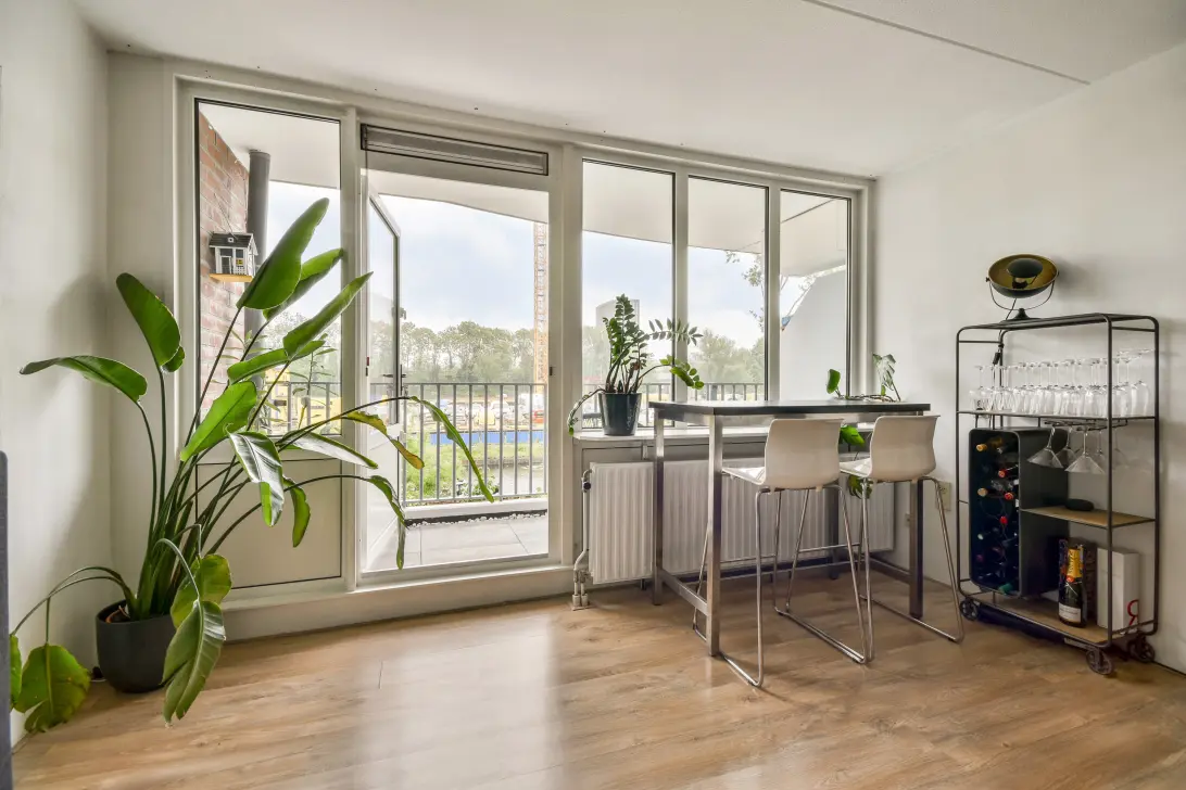 On the first floor of a well-maintained complex you will find this spacious and ready-to-move-in apartment with two lovely balconies facing east and west. The house is located in a green oasis within walking distance of the Sloterplas and a few restaurants, shops and bars. Here you live wonderfully spacious and quiet and you have all the conveniences of the big city within reach. The Sloterplas and the Sloterpark are located opposite the complex. Here you will experience a wonderful holiday feeling and you can get rid of your energy during a walk around the Sloterplas or relaxing on Sloterplas beach. Trendy neighborhoods such as De Baarsjes and Bos en Lommer are a short bike ride away. Here you will also find a wide range of shops for daily shopping, specialty shops and nice restaurants. The city center is reachable in around fifteen minutes by bike or public transport. Tram 13 and metro 50 and 51 are just a few minutes' walk away. And via Lelylaan and Sloterdijk stations you can reach Schiphol in no time. Also by car, the A-10 ring road can be reached within a few minutes.