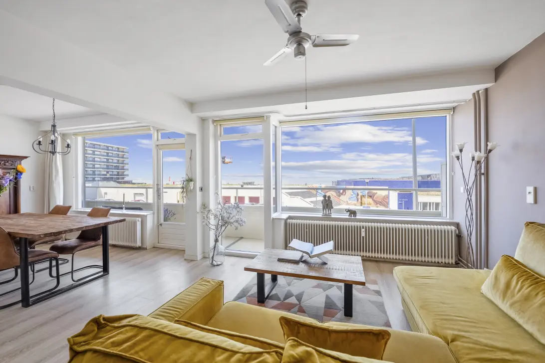Met een panoramisch uitzicht op zee ligt op de 1e verdieping dit ruime drie (voorheen 4 kamer appartement) met 2 zonnige balkons op het westen en op het oosten. Het appartement is zeer ruim en lekker licht. Vanuit de zeer royale woonkamer (voorheen 2 kamers) heb je een uniek vrij uitzicht. Het appartement bestaat o.a. uit 3 ruime kamers, een open keuken met royale inpandige berging, een badkamer en een eigen berging in de onderbouw. Het gebouw is zeer recent aan de buitenzijde geschilderd en is voorzien van een afgesloten entree met videofooninstallatie en een lift. Parkeren kan op de openbare weg d.m.v. een vignettensysteem maar je hebt de mogelijkheid om aan de overkant een parkeerplek te huren in de garage.