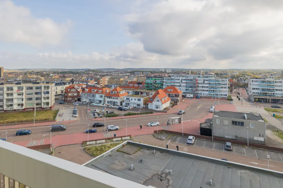 Het appartement biedt uitzicht op zee, en een weids uitzicht over Zandvoort tot aan Haarlem aan de achterzijde.