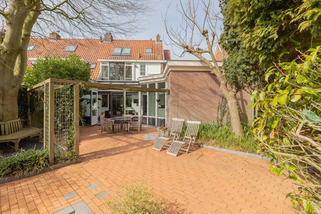 De openslaande deuren geven toegang tot de zonnige achtertuin (ca. 15m diep), gelegen op het zuid-oosten. Hier geniet u vrijwel de hele dag van de zon, met voldoende ruimte om te ontspannen, te spelen of buiten te dineren.