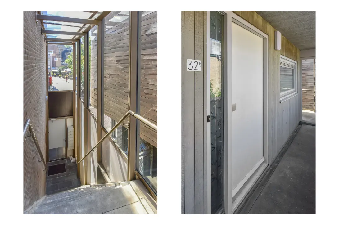 Via de trapopgang en de galerij bereikt u de entree van het appartement.