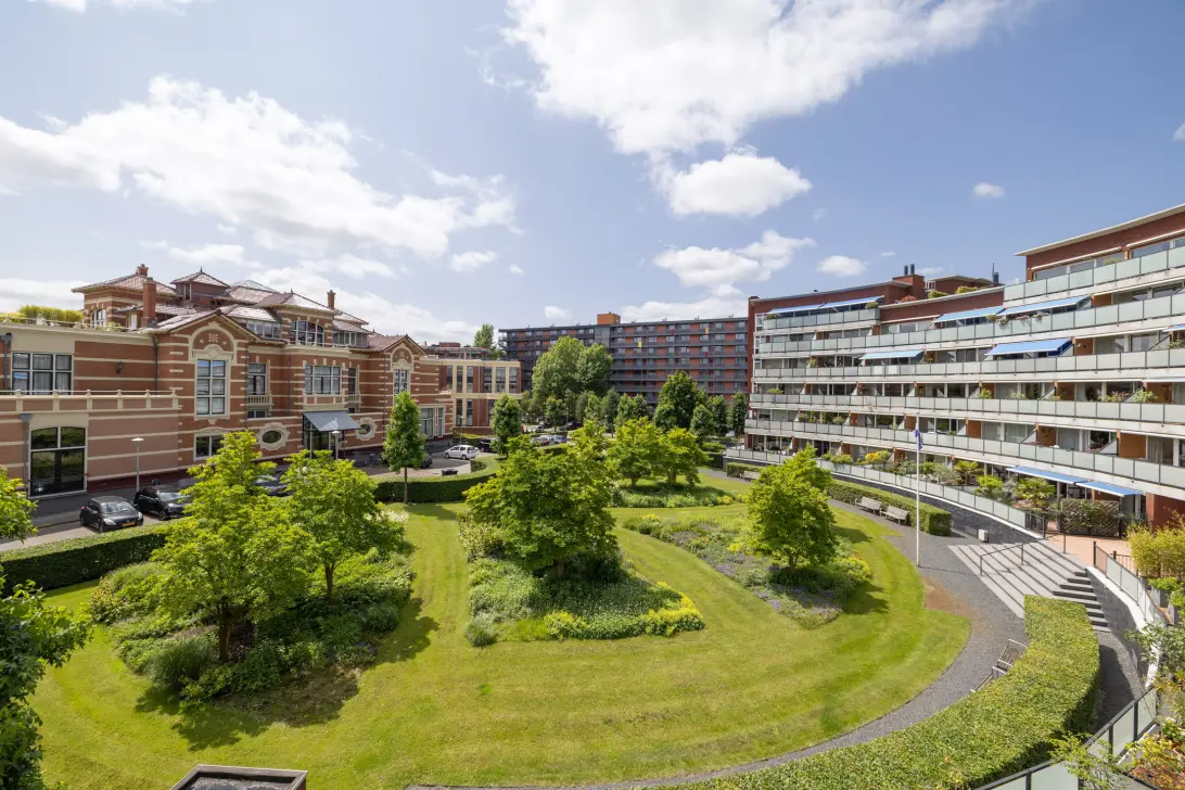 De ligging op een hoek betekent extra zijramen waardoor het appartement extra veel lichtinval heeft. Vanuit de woonkamer is er door middel van een schuifpui toegang naar het zonnige terras van ca. 15 m². Dit terras ligt op het zonnig zuidwesten en met een fraai uitzicht op de binnentuin en villa Casparus.