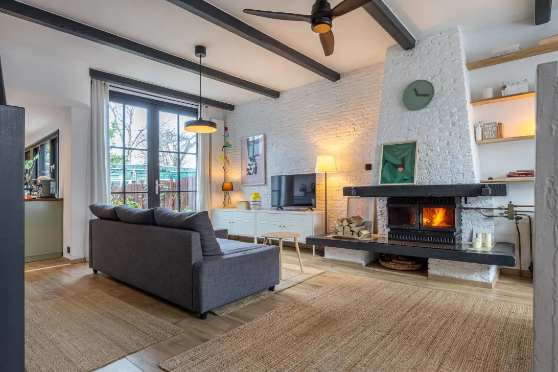 - Sfeervolle woonkamer met open haard;