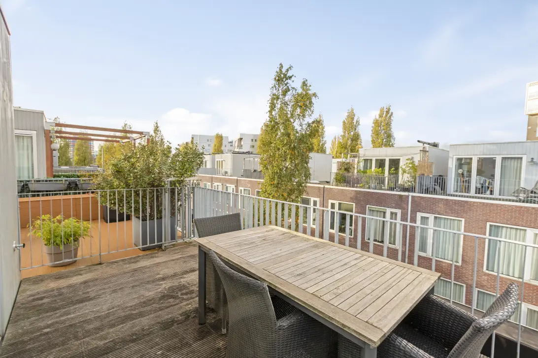 **BEAUTIFUL HOUSE OF APPROXIMATELY 165 M² (EXCLUDING INDOOR GARAGE OF APPROXIMATELY 18 M²) WITH 4/5 BEDROOMS, 2 BATHROOMS, AND A ROOFTOP TERRACE. LOCATED ON A QUIET, LOW-TRAFFIC STREET IN THE EASTERN DOCKLANDS, JUST AROUND THE CORNER FROM RIETLANDPARK. A COMPLETE PROPERTY IN THE CITY, IDEAL FOR A COUPLE OR FAMILY SEEKING PEACE AND SPACE, YET ONLY ABOUT 10 MINUTES BY BIKE FROM CENTRAL STATION.**