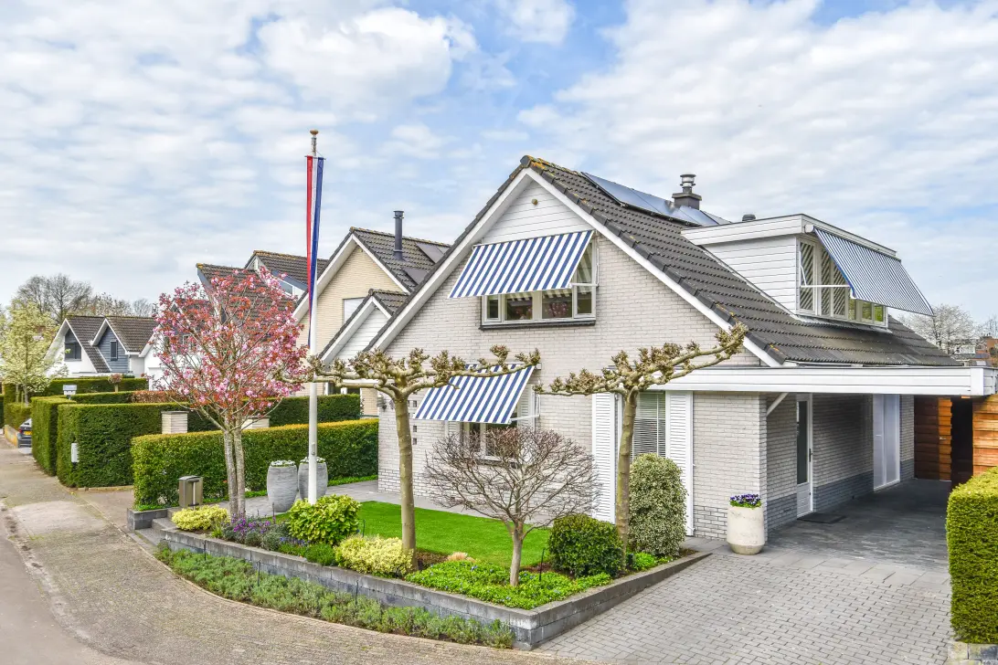 De tuin rondom biedt volop privacy, groen en ruimte. De huidige eigenaren noemen hun huis met een knipoog ‘Toffe Peren’, een verwijzing naar de mooie perenbomen die in de tuin staan. Er is altijd wel een plek in de zon te vinden — of juist een schaduwrijke hoek om te ontspannen. De carport is voorzien van stroom, handig voor het plaatsen en opladen van (elektrische) fietsen onder de overkapping. Op eigen terrein is er ruimte om twee tot drie auto’s te parkeren.