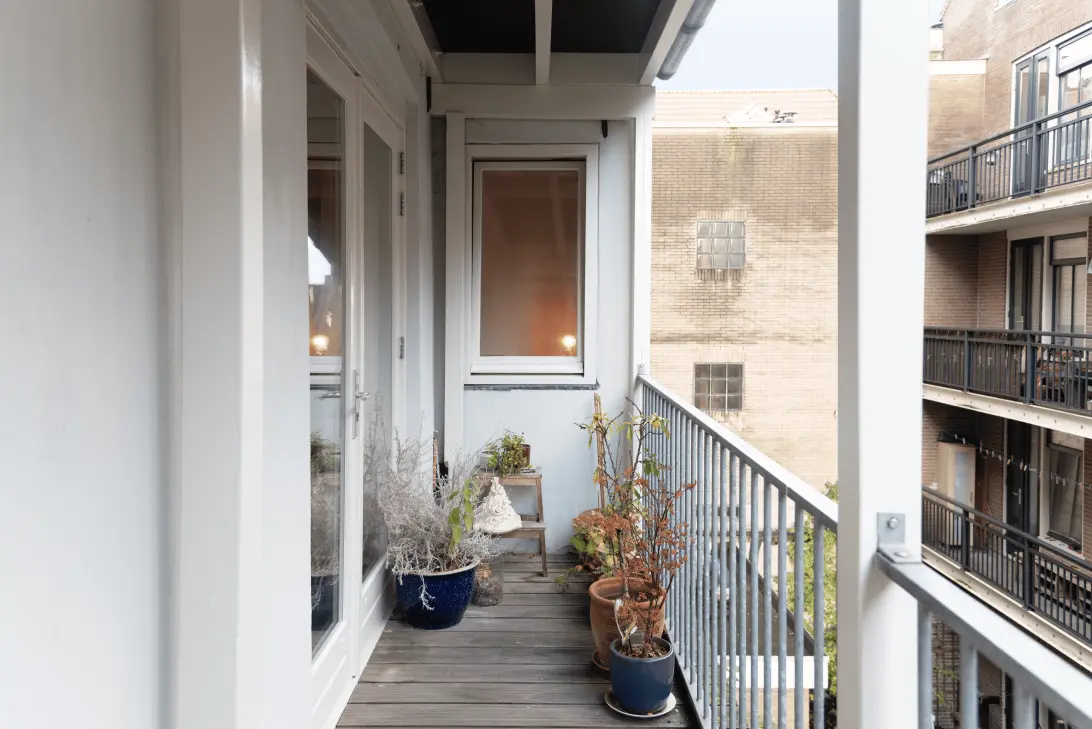 Via een klein halletje bereikt u het slaapgedeelte. Hier liggen twee royale slaapkamers van circa vijf meter lang. De kamer aan de achterzijde fungeert als masterbedroom en heeft directe toegang tot het balkon, ideaal om ’s ochtends de deuren open te zetten en de dag rustig te beginnen. De slaapkamer aan de voorzijde is momenteel in gebruik als kinderkamer, maar kan net zo goed dienen als logeer of werkkamer.