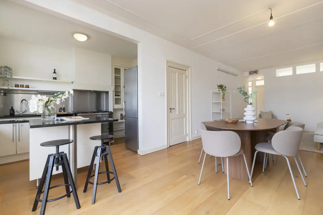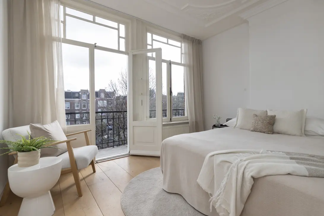 In short: a bright and well-designed double upper apartment with four bedrooms, two bathrooms, and unobstructed water views, located in one of the most desirable spots in Oud-West.