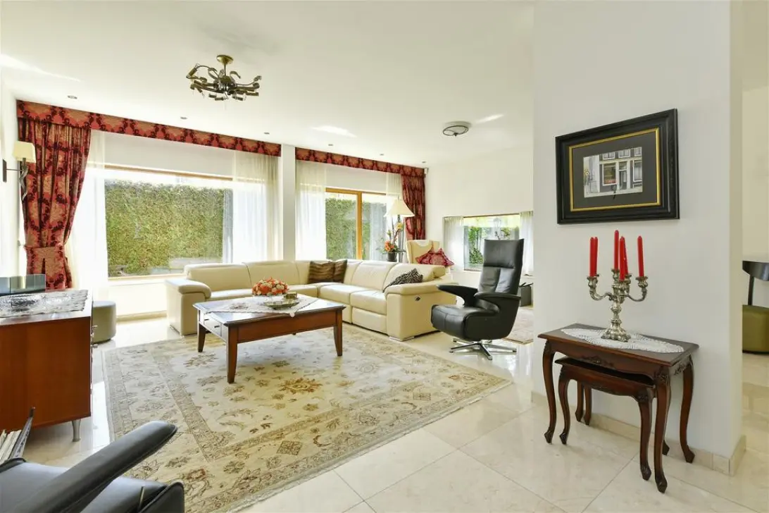 We offer for sale a modern detached villa of approximately 302 m2 with front, rear and side garden and a private driveway for 2 cars. The house is located in a quiet street on a plot of 683 m2 OWN LAND. At the rear, the house borders on a park. The backyard is facing Southwest.