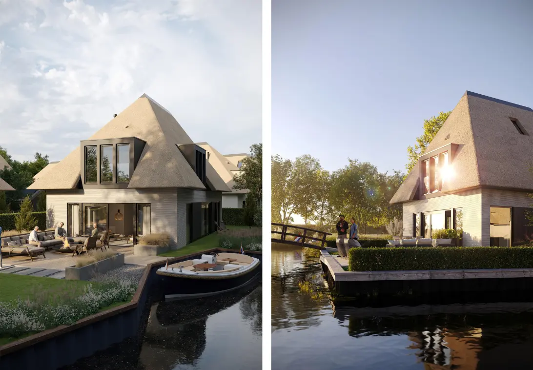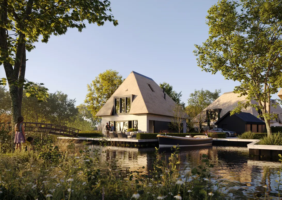 De Eilanden beschikt over vijf schitterende, vrijstaande rietgedekte villa’s, perfect voor gezinnen of levensgenieters die op zoek zijn naar luxe, ruimte en een unieke leefomgeving. Met een eigen aanlegplaats, privébrug naar een overtuin én een royale tuin aan het water beleef je hier iedere dag het ultieme buitenleven. Luxe, duurzaamheid en stijl komen hier moeiteloos samen.