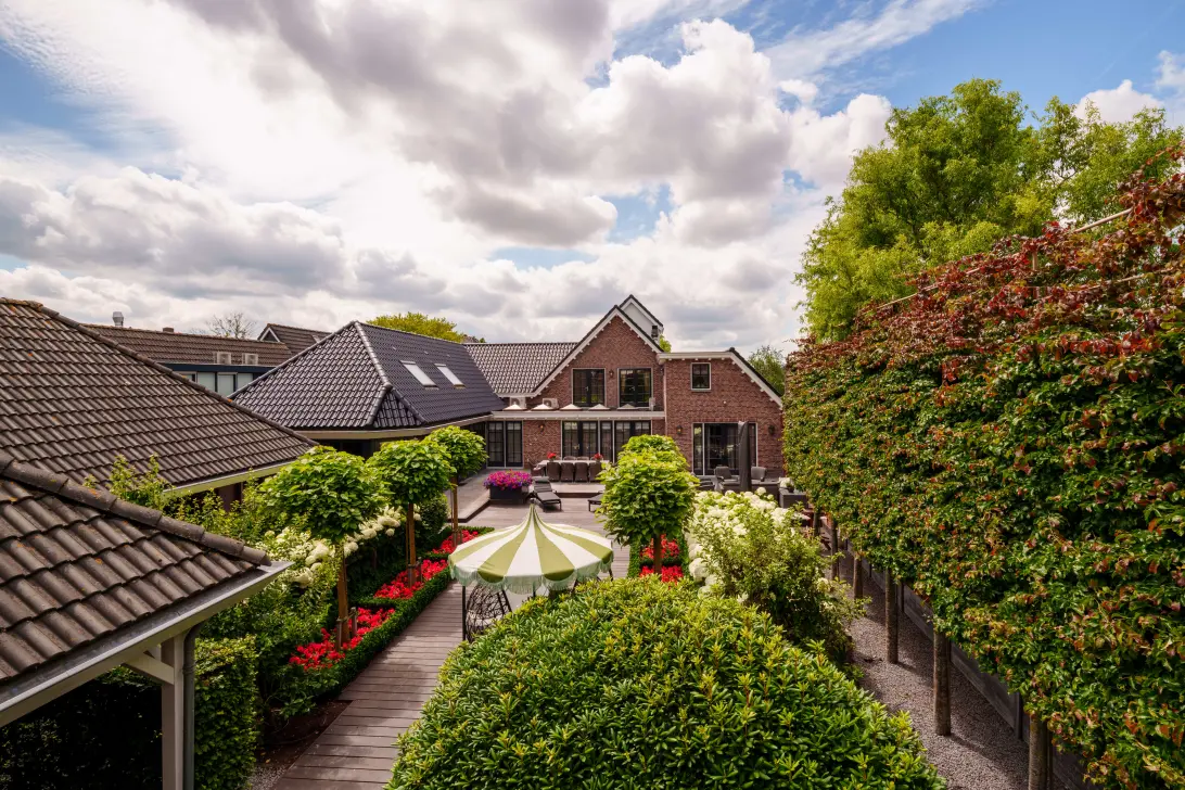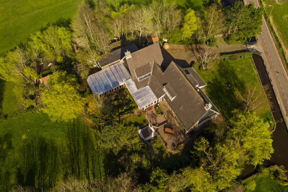 Een uniek en degelijk gebouwd landhuis van ruim 2370 m3 met o.a. een dubbele inpandige garage, een jacuzzi en zwembad met verrijdbaar dak op een fantastisch perceel eigen grond van ruim een hectare groot (10.025 m2). Om vanuit de tuin de zonsondergang te bewonderen geeft een onbetaalbaar vakantiegevoel. De locatie is fenomenaal en aan ruimte is geen gebrek. Het geheel is gelegen op een eiland met uiteraard een eigen toegangsbrug met elektrisch bedienbaar hekwerk en een oprijlaan omdat de woning wat verder van de weg gesitueerd is. De woning met tuin en het naastgelegen grasland is geheel omsloten door water met een open vaarverbinding. Let daarbij wel op de diepgang van de boot.