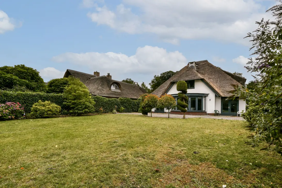 Aan de rustige rand van Laren, in een lommerrijke villawijk, staat deze royale vrijstaande villa (bouwjaar 2006) met een rieten kap, inpandige garage en fraai aangelegde tuin met charmant bijgebouw. Het huis is royaal opgezet, licht en modern vormgegeven, en biedt optimale privacy. Dankzij de ligging aan een rustige laan, op loopafstand van de natuur, combineert deze villa luxe woongenot met rust en ruimte.