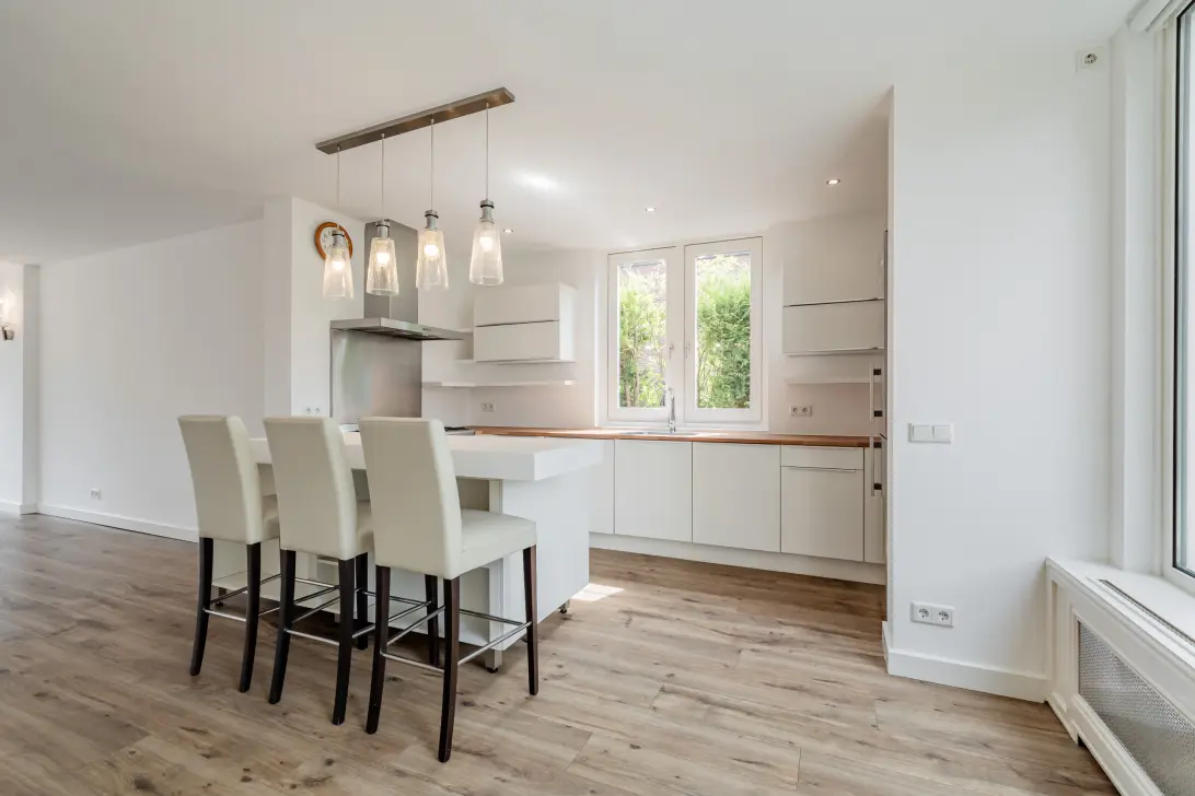 - Luxe open keuken met kookeiland en moderne inbouwapparatuur.