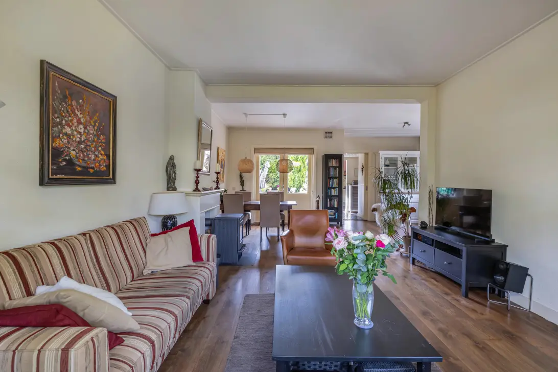 Via de openslaande deuren in de eetkamer bereik je het zonnige terras.