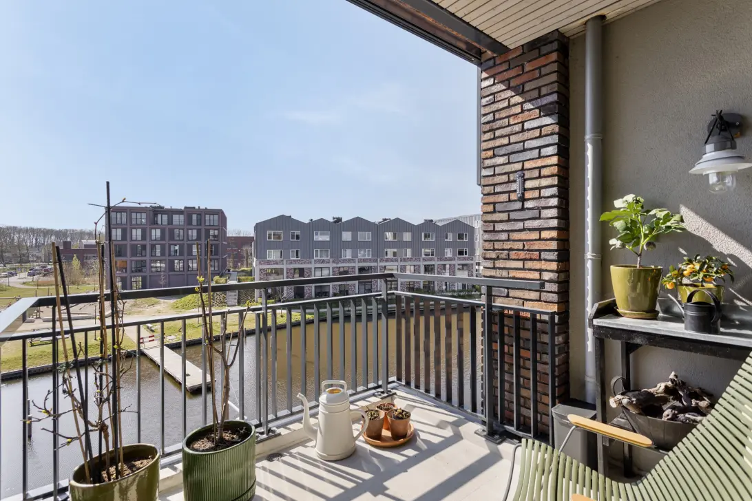 Het ruime balkon is op het Zuidwesten gelegen, ook al zo’n fijne plek!