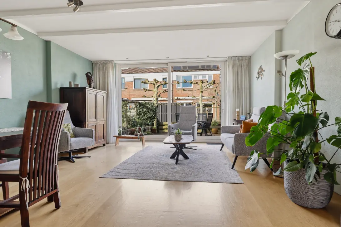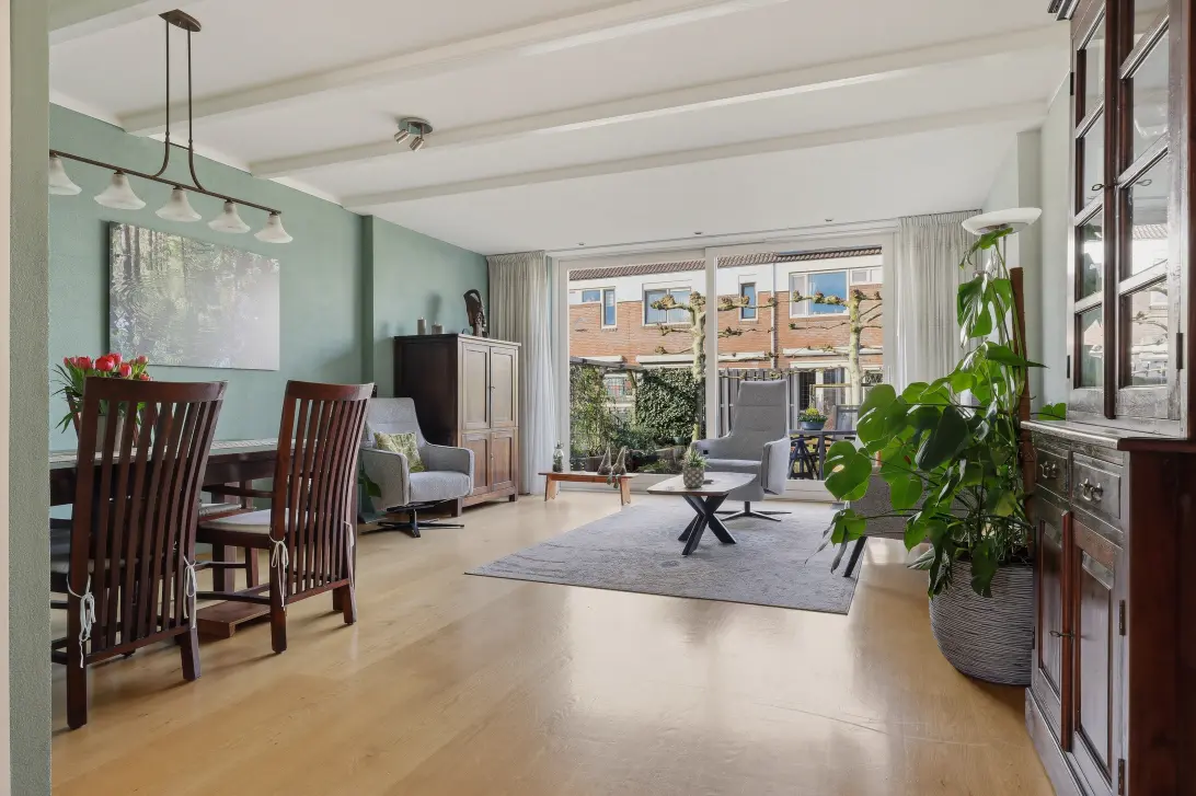 Bij binnenkomst valt direct de royale en lichte woonkamer op. De uitbouw aan de achterzijde (2005) in combinatie met de grote schuifpui zorgt voor een overvloed aan daglicht en een ruimtelijk gevoel. Er is meer dan voldoende plek voor zowel een comfortabele zithoek als een grote eettafel, een ideale leefruimte waar je echt tot rust komt. Aan de voorzijde bevindt zich de keuken, voorzien van diverse inbouwapparatuur zoals een oven, combimagnetron en vaatwasser. De kookplaat, afzuigkap en koelkast zijn in 2023 vernieuwd. Vanuit de keuken heb je een prettig uitzicht over de straat.