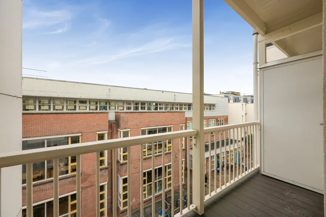 Via het gemeenschappelijke trappenhuis bereikt u het appartement op de derde verdieping. Bij binnenkomst via de voordeur komt u in de hal, die toegang biedt tot verschillende vertrekken. U heeft keuze uit de deur naar het toilet met fonteintje, de slaapkamer aan de achterzijde, of de ruime woonkamer aan de voorzijde voorzien van een Frans balkon en een prachtig uitzicht over het water. Aan de achterzijde bevindt zich de open keuken, die toegang biedt tot het balkon van 4,3 m², gelegen op het westen. Via een kleine berging, waarin zich de aansluiting voor de wasmachine, de mechanische ventilatieunit en de cv-ketel (bouwjaar 2015) bevinden, komt u in de badkamer, die is uitgerust met een douche en wastafel.