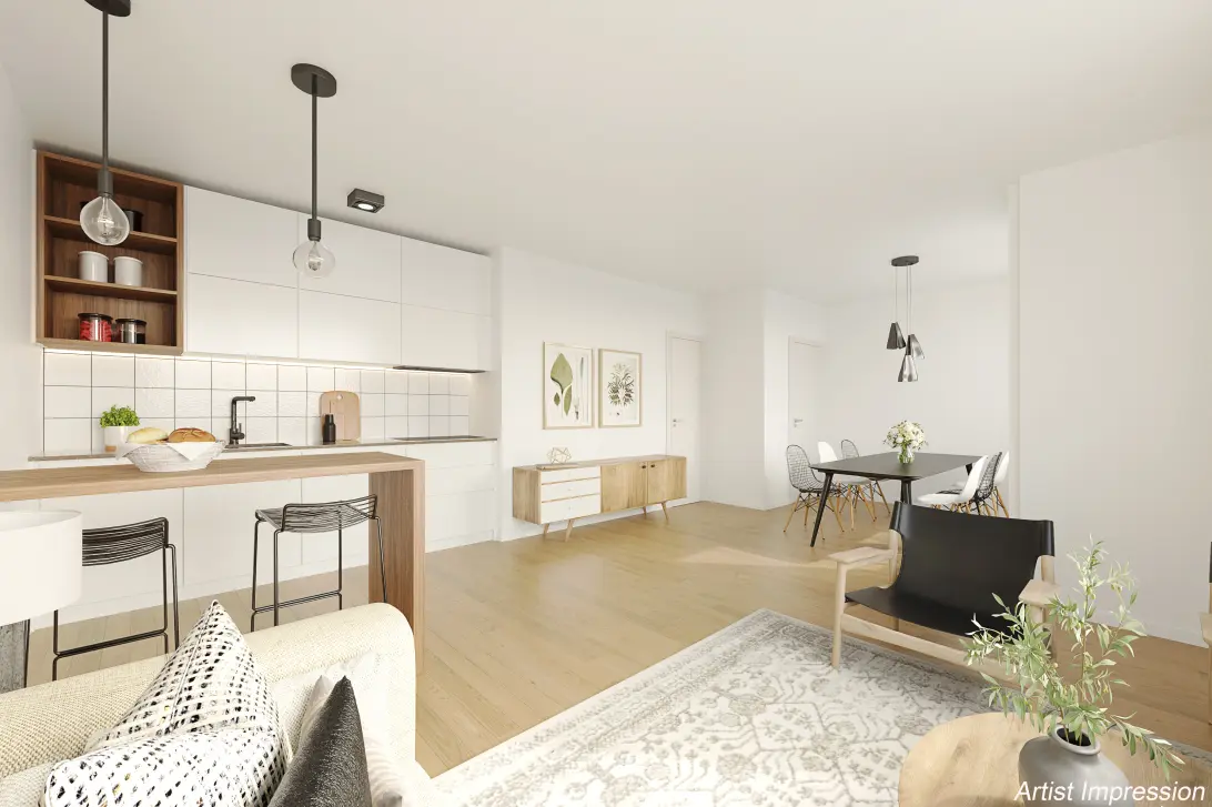 - 3-kamer appartement met 2 slaapkamers;