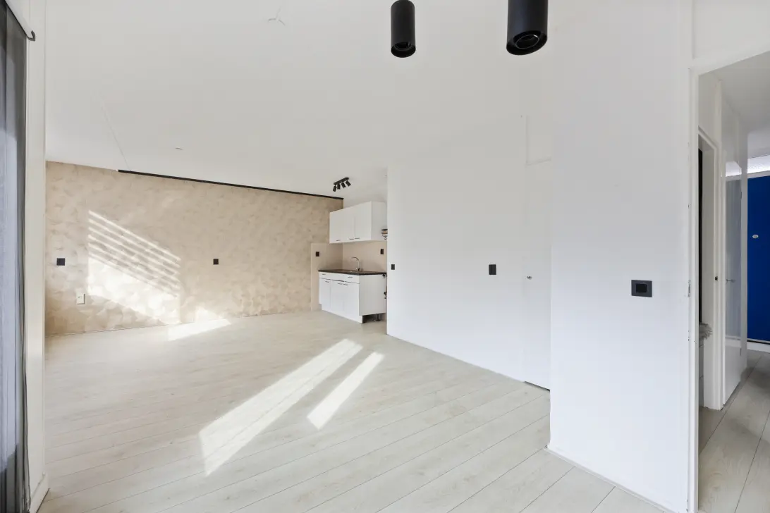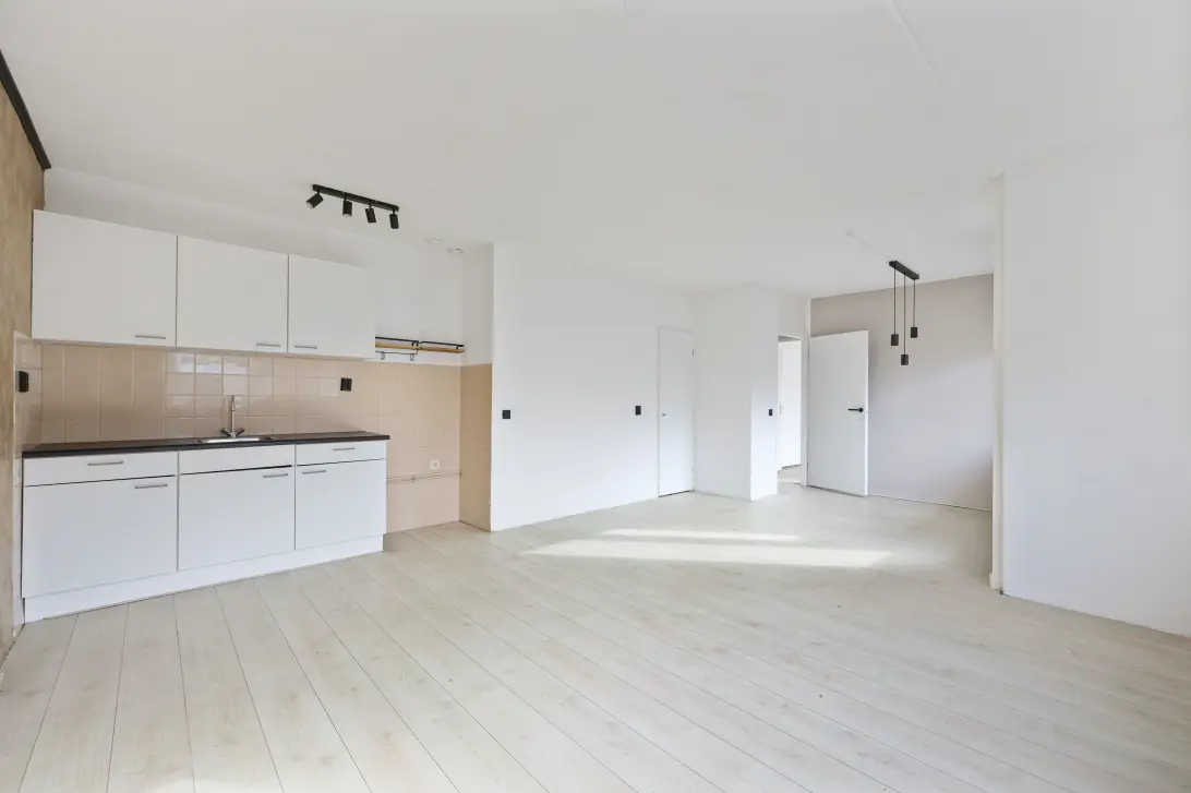 De keuken is praktisch en modern ingedeeld en biedt voldoende kastruimte en werkblad. De ruimte is functioneel opgezet en geeft de mogelijkheid om deze geheel naar eigen wens verder in te richten. Het appartement beschikt over twee slaapkamers, ideaal als hoofdslaapkamer en bijvoorbeeld een werk-, logeer- of hobbykamer.
