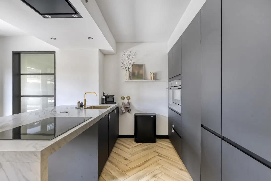 Fraaie woonkeuken: Een plek waar functionaliteit en stijl samenkomen, perfect voor gezellige maaltijden en samenzijn.