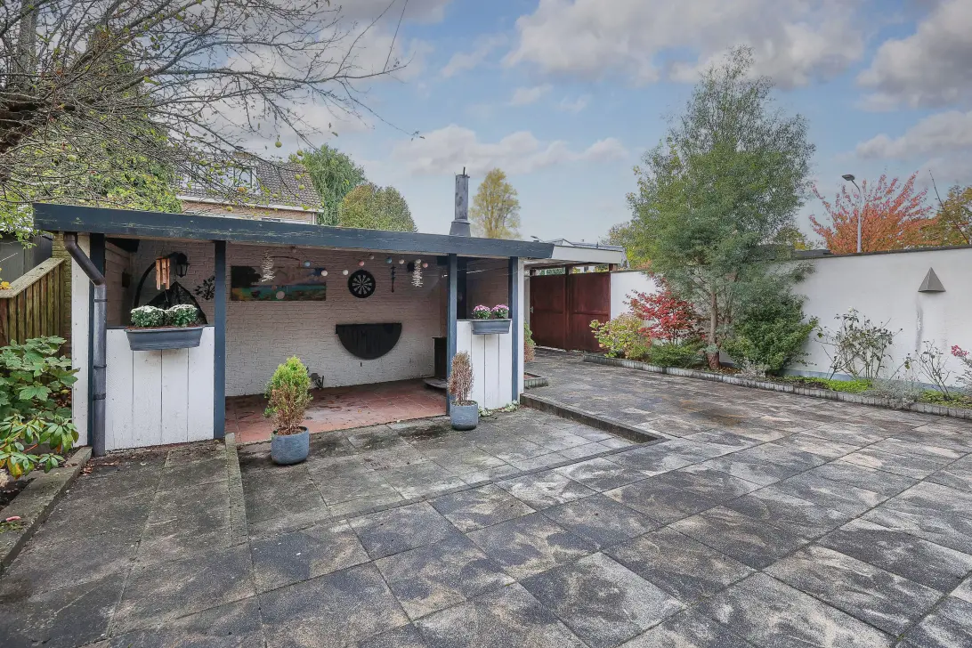 De grote tuin op het zuidwesten is een van de grootste troeven van dit huis: volop zon, privacy en ruimte om verder uit te bouwen of een veranda te realiseren. Vanuit de tuin is de garage direct bereikbaar. Aan de voorzijde kijk je vrij uit over een groene vijverpartij.