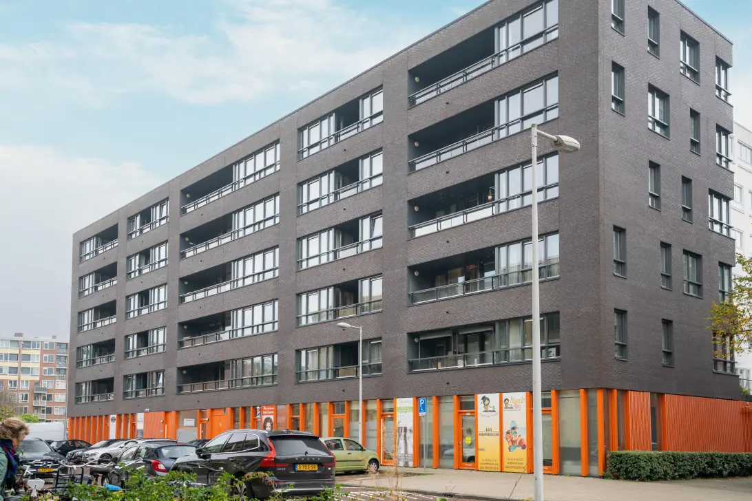 The private parking space is in a secured and enclosed garage. At the upcoming Homeowners’ Association (VvE) meeting, a proposal will be made to install an infrastructure for EV charging stations, likely requiring a one-time contribution. Additionally, there is a covered bicycle and scooter parking area for extra storage.