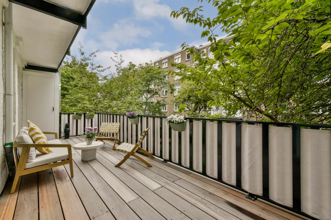 Heerlijk, licht en smaakvol verbouwd appartement met eigen toegang, twee royale slaapkamers en diep terras aan de achterzijde.