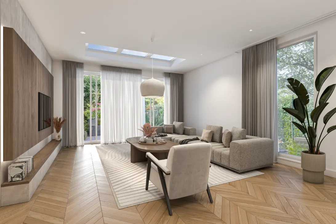 De woonkamer ligt aan achterzijde en is compact maar desgewenst heel makkelijk te vergroten door de glazen serre te vervangen door een stenen aanbouw. De palen hiervoor zijn al geslagen. Heb je die extra ruimte niet nodig, dan geniet je nu ook al heerlijk van die extra buitenkamer. Voorzien van rondom glas en elektrische screens zit je hier het hele jaar door heerlijk: kopje thee, boekje erbij, een lekkere loungestoel, wat wil je nog meer..?