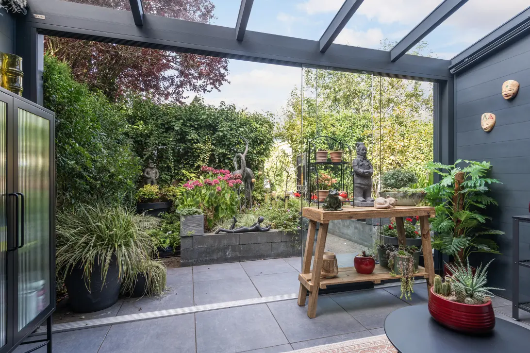 En als je ook nog van groen en natuur houdt, zit je hier helemaal goed. Want de woning heeft een aangebouwde serre als tuinkamer waardoor je helemaal opgaat in de groene, privacyvolle tuin.