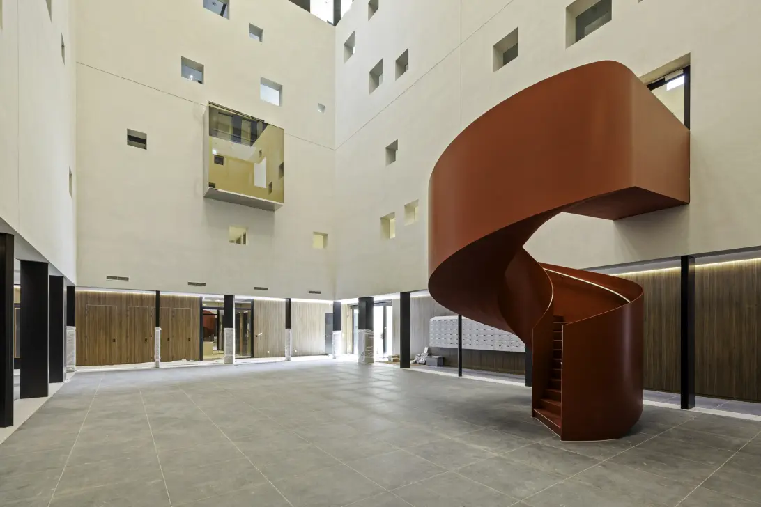 • 5th floor of a modern apartment building with elevators