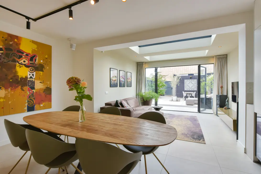- prachtige vide, lichtstraat, brede glazen pui en openslaande tuindeuren;