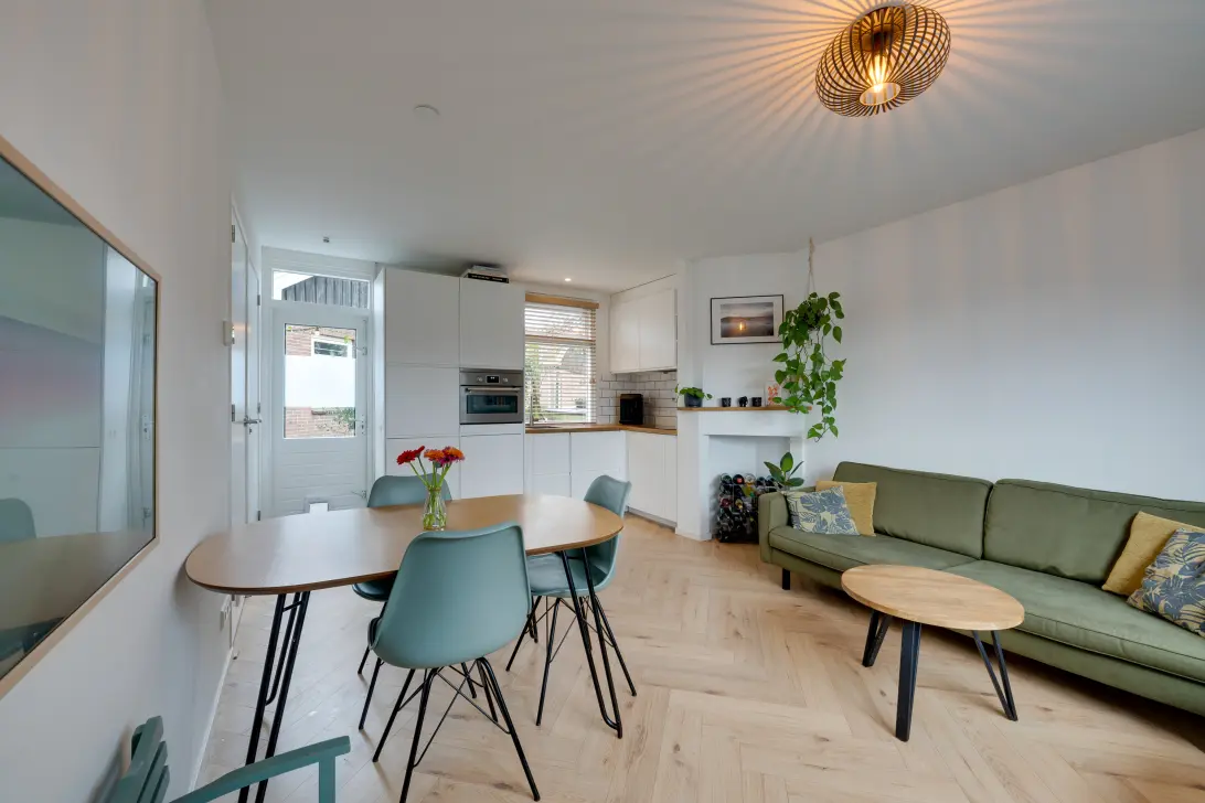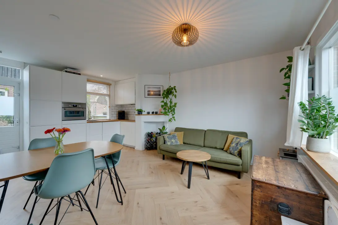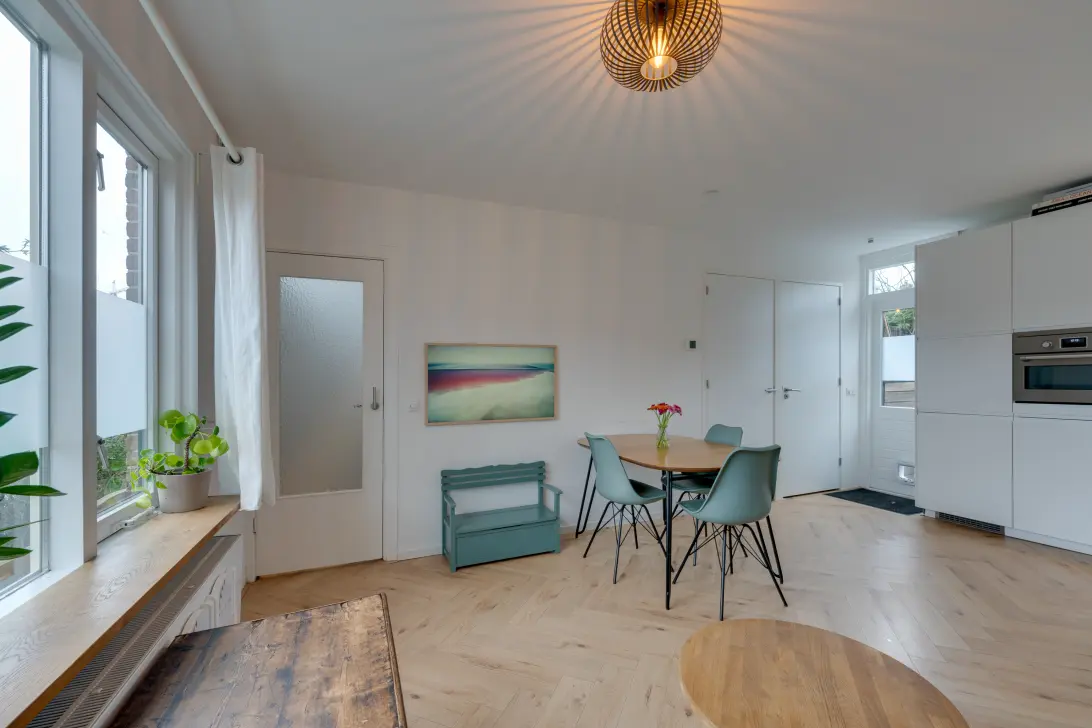 Bij binnenkomst valt direct de prettige lichtinval op. De lichte woonkamer met open keuken heeft een vrij en groen uitzicht dankzij de ligging aan een plantsoentje aan een brede weg. Dit zorgt voor een open en ruimtelijk gevoel, midden in de stad. De moderne keuken is stijlvol afgewerkt en voorzien van alle benodigde inbouwapparatuur, ideaal voor zowel de dagelijkse maaltijd als gezellige etentjes met vrienden. Op de begane grond bevindt zich tevens een separaat toilet met fonteintje.