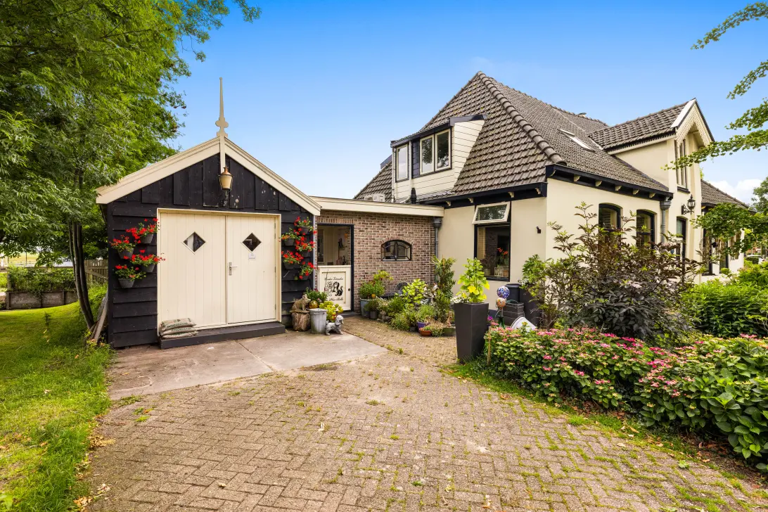 Landelijk wonen in een twee-onder 1-kapwoning met een nieuwe fundering (2006), een aanbouw waar thans nog een hondentrimsalon is gevestigd, een overkapping met open haard waar men gezellig kan zitten, een garage, een blokhut en een kas. Voor de woning is er genoeg ruimte om wel 4 auto’s te parkeren wat zeker bij wonen aan het lint geen overbodige luxe is. Het spreekt voor zich dat wonen en werken hier gecombineerd kan worden. Achter de woning ligt een trainingsveld van de plaatselijke voetbalvereniging, dit geeft een geweldig vrij uitzicht.