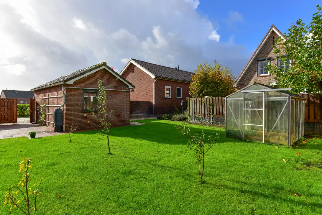 Eén van de unieke voordelen van deze woning is de grote kavel van circa 975 vierkante meter. Er zijn meerdere terrassen te vinden tussen de diverse plantvakken en het grote gazon. De voortuin is afgewerkt met grind en biedt parkeergelegenheid aan meerdere auto’s. De vrijstaande garage is zowel via de voor- als de achtertuin te bereiken. Heb je meer bergruimte nodig? Aan de rechterzijde van de tuin staat een grote houten blokhut.
