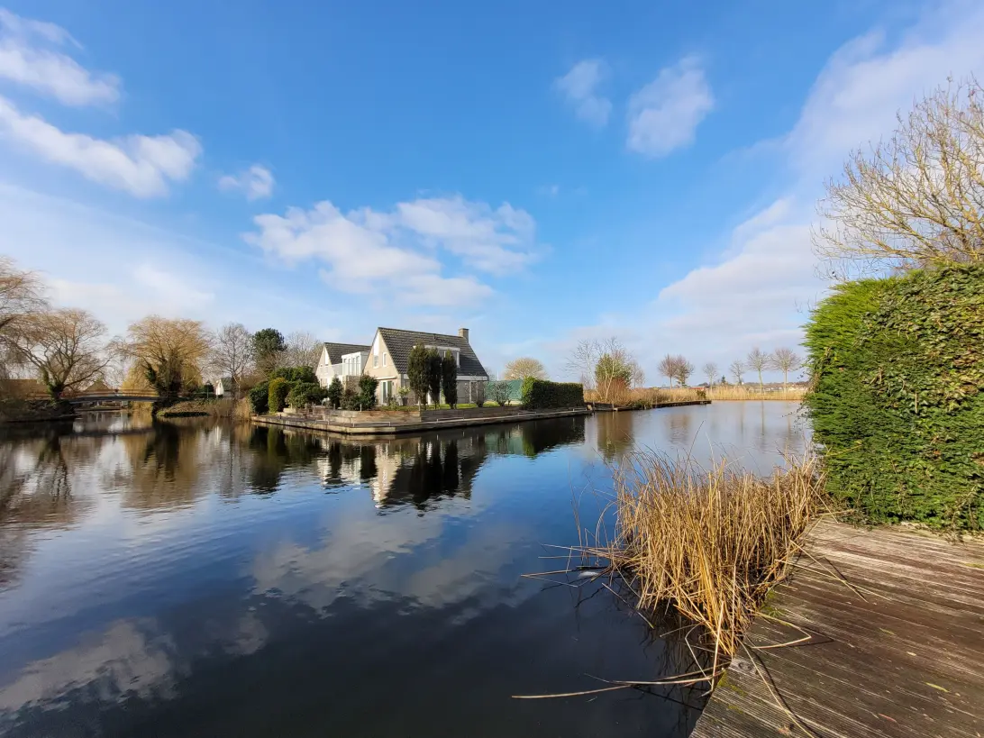 - Ruime groene tuin met aanleg steiger voor boot, gelegen aan doorgaand vaarwater;