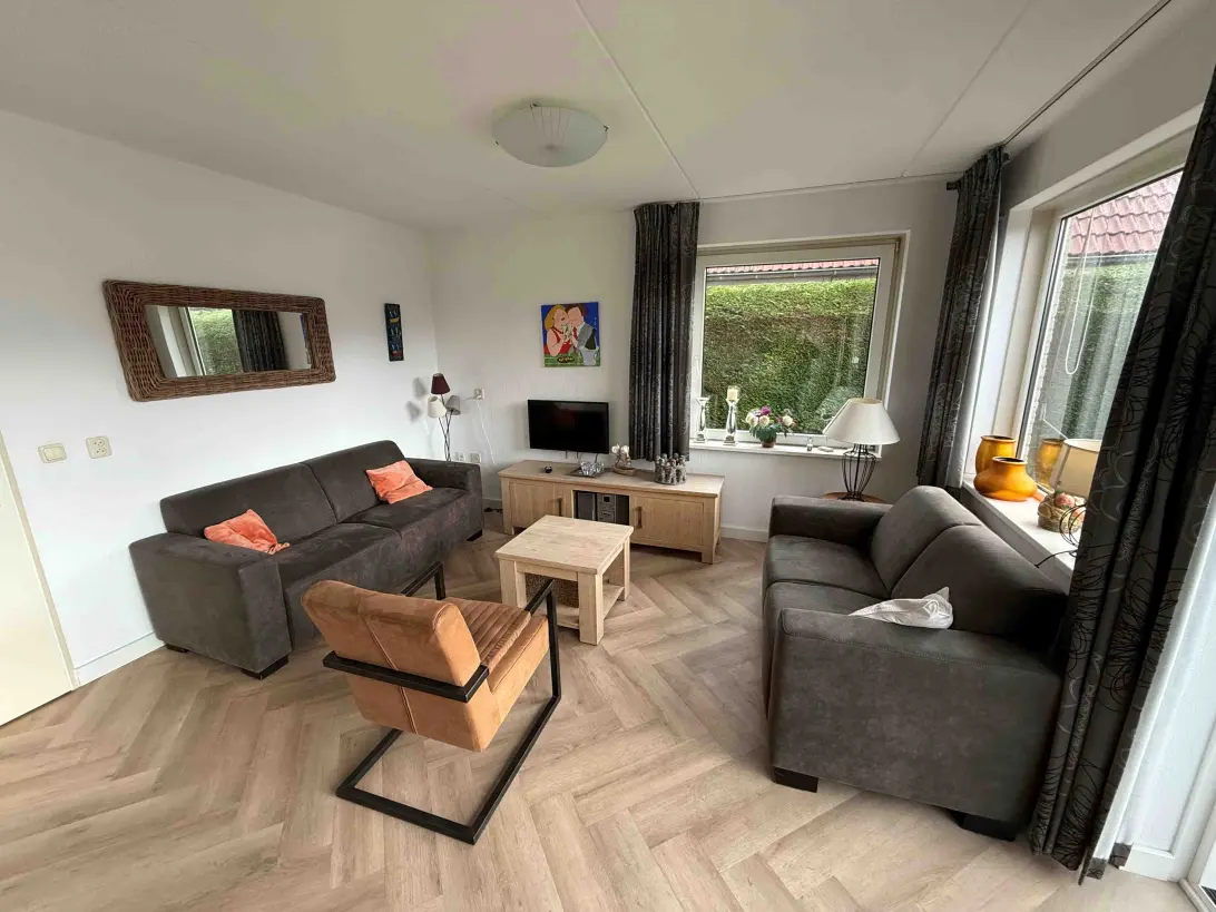 Via de hal komt u in de woonkamer met open keuken. De keuken is 2 jaar geleden vernieuwd en voorzien van diverse inbouwapparatuur. De woonkamer is voorzien van een schuifpui, via deze schuifpui komt u op het terras en tuin. De schuifpui is in 2018 vervangen door een aluminium schuifpui. In de woonkamer, keuken en hal ligt een pvc vloer.
