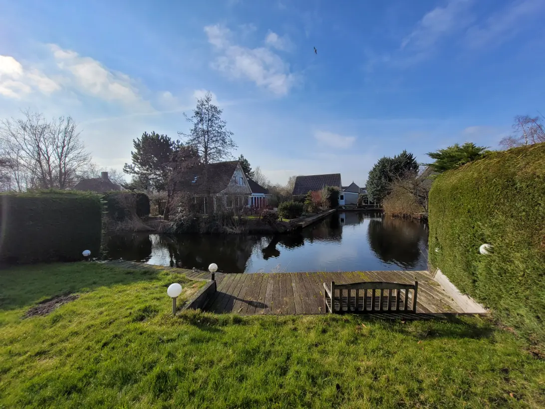 De woning is omgeven door een tuin rondom, met een zonnige achtertuin op het westen waar u tot in de avond van de zon kunt genieten. Gelegen aan doorgaand vaarwater met een eigen steiger is dit een droomplek voor watersportliefhebbers: stap in uw boot en vaar direct de prachtige natuur in.