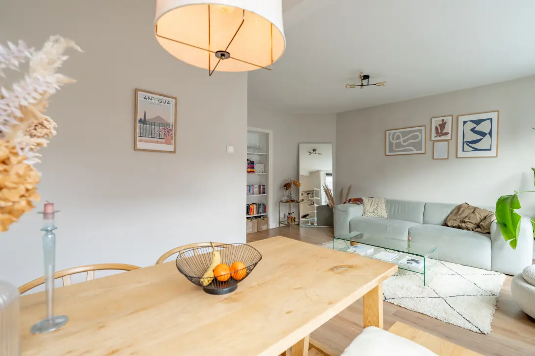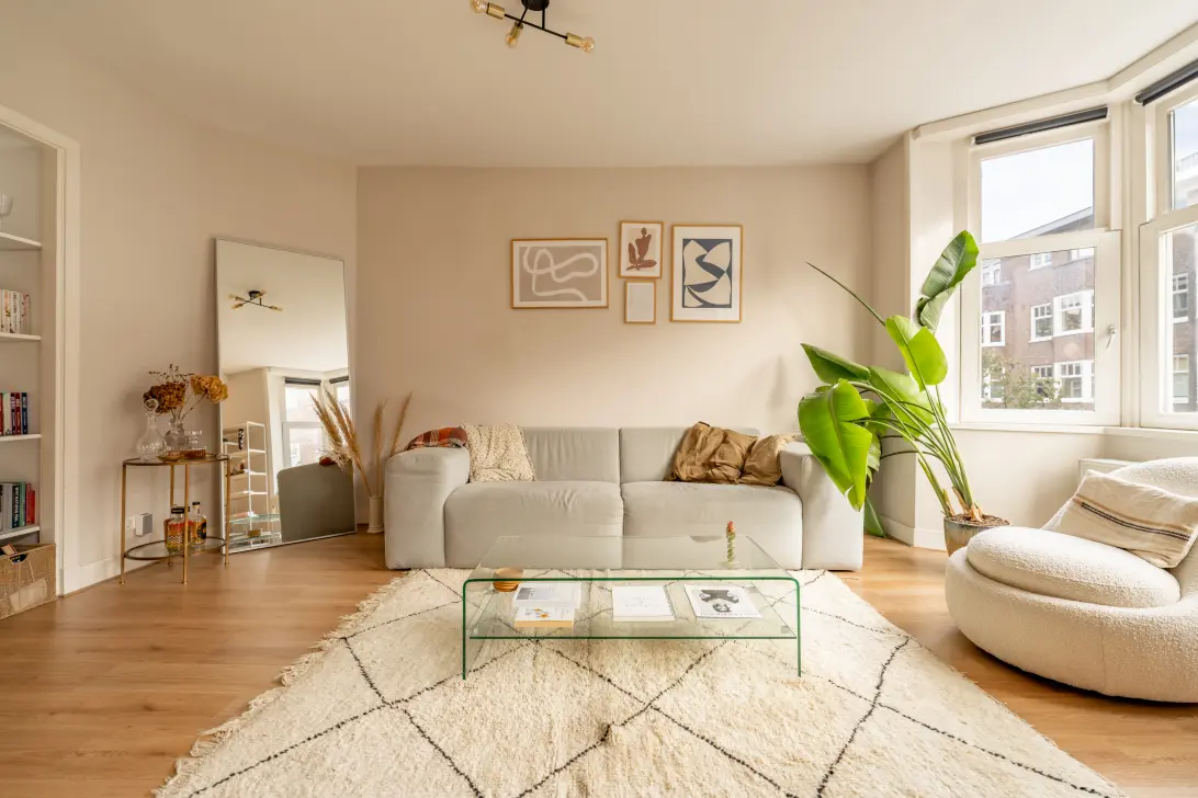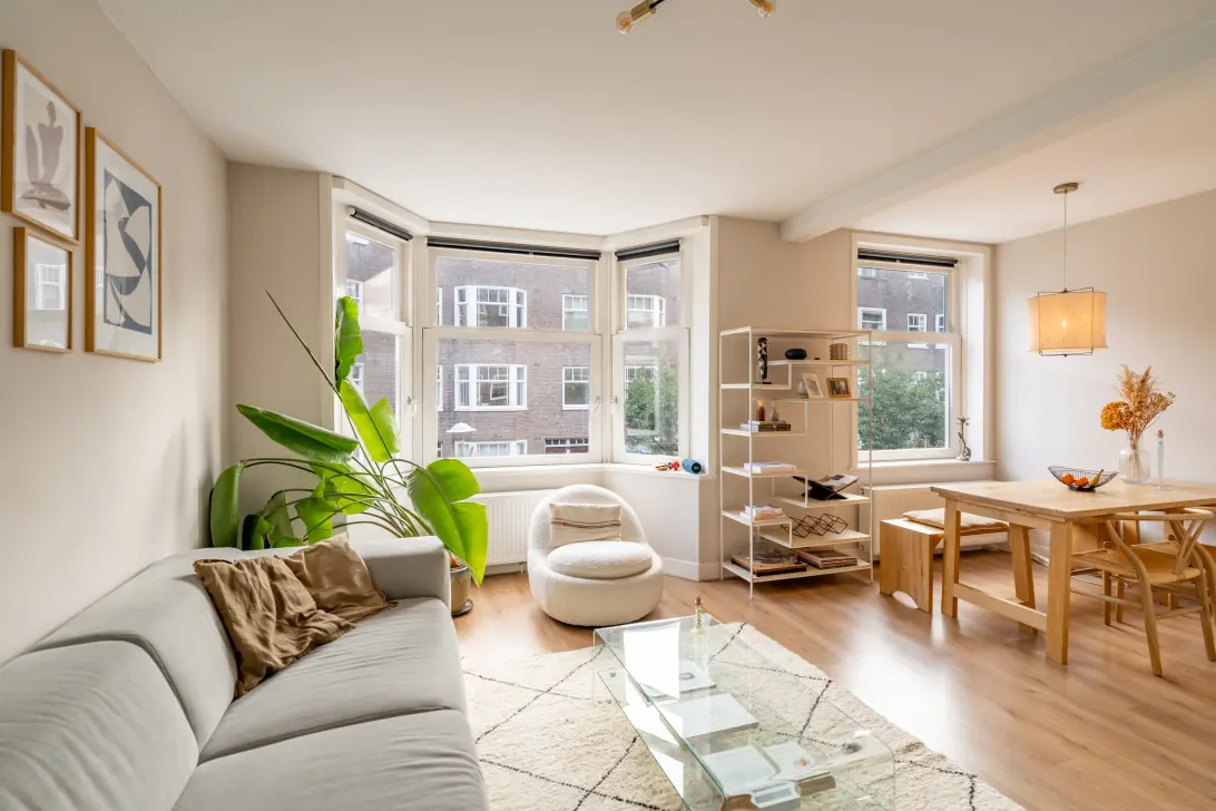 Wanneer je het pand binnenloopt merk je meteen die rustige, vriendelijke Rivierenbuurtsfeer. Je gaat de trap op naar de eerste verdieping, opent de deur… en staat direct in een woonkamer die je omarmt met licht. De erker vangt het daglicht op een manier die je alleen bij deze bouwstijl vindt — warm, zacht, uitnodigend.
