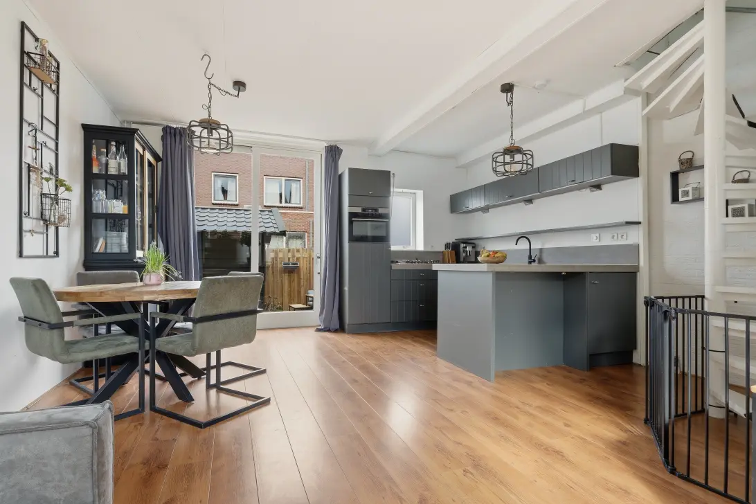 Bij binnenkomst wordt u verwelkomd in de lichte woonkamer, waar de grote schuifpui zorgt voor een prettige verbinding met de tuin en een fraaie lichtinval. Aan de achterzijde bevindt zich de open keuken, die onlangs deels is voorzien van vernieuwde inbouwapparatuur en beschikt over een leuke keukenbar. Op de begane grond bevindt zich ook het toilet, dat in 2015 is gerenoveerd. Op de eerste verdieping treft u drie slaapkamers en de badkamer. De hoofdslaapkamer is gunstig gelegen aan de achterzijde van de woning. De twee slaapkamers aan de voorzijde zijn voorzien van nieuwe stopcontacten en lichtschakelaars. De badkamer is compleet uitgevoerd en voorzien van een ruime douche, wastafel, toilet en een aansluiting voor de wasmachine. De tuin heeft een aparte berging en biedt plaats voor een leuk zitje.