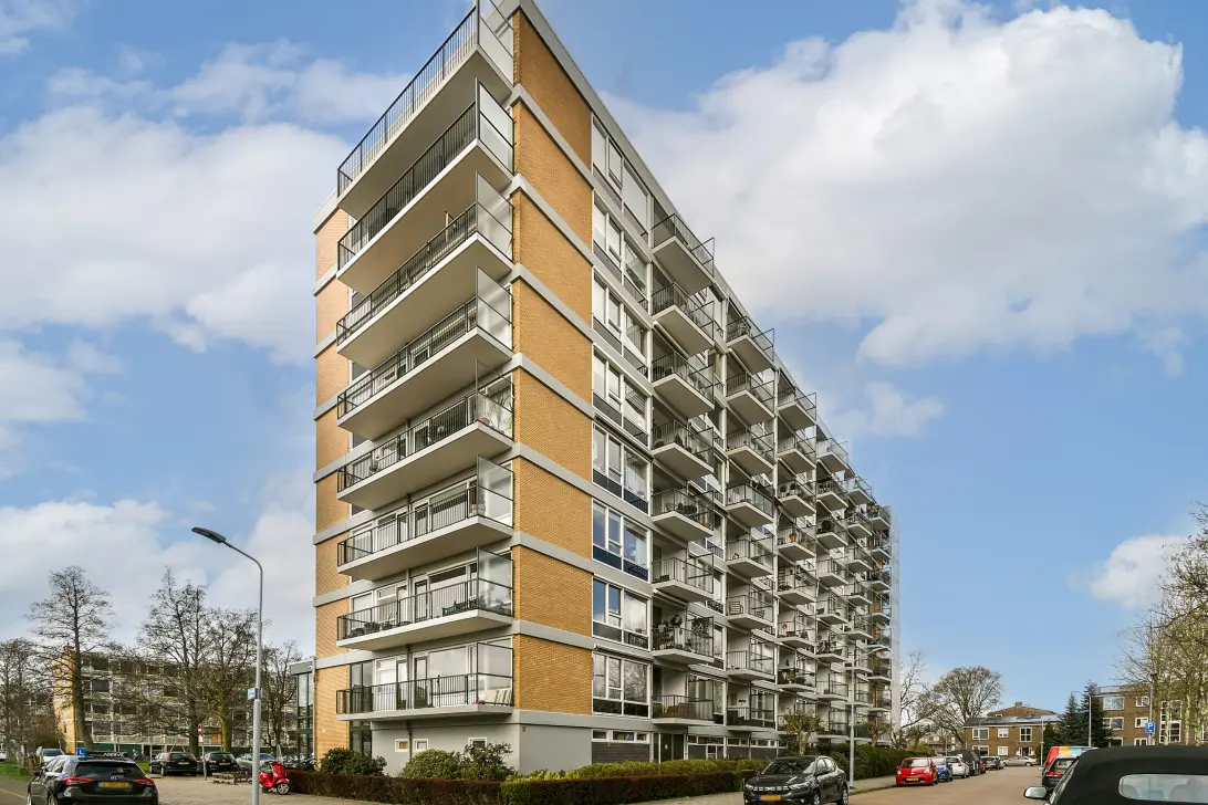 Het appartement is gelegen op de achtste verdieping en is bereikbaar via een galerij. Het appartement betreedt u via een tochtportaal/ entree met toegang tot de hal. Vanuit de hal zijn alle vertrekken bereikbaar. De royale woonkamer is zeer licht door de grote raampartij en biedt een goede mogelijkheid voor het plaatsen van een zithoek en een eetgedeelte. De woonkamer staat in verbinding met de naastgelegen werk-/ slaapkamer. Deze kamer is eveneens bereikbaar vanuit de hal en is voorzien van een vaste kastenwand. Grenzend aan deze kamer bevindt zich het ruime terras met vrij uitzicht en ligging op het zuidoosten. Aan de galerijzijde van het appartement bevindt zich de keuken en een grote slaapkamer met een vaste kastenwand en wastafel. Vanuit de hal is het toilet bereikbaar, de badkamer met douche en wastafel en een praktische inpandige berging. Op de begane grond van het complex bevindt zich eveneens een (fietsen)berging. Het is mogelijk om een garagebox bij de woning te kopen. Het appartementencomplex is in 1965 gebouwd en wordt beheerd door een actieve VVE.