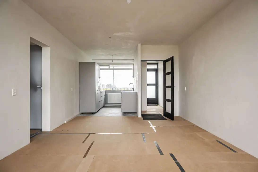 Op de 8e verdieping van een goed onderhouden complex bevindt zich dit sfeervolle en volledig gemoderniseerde 2-kamerappartement. Het riante en zonnige balkon over de gehele breedte ligt op het westen, ideaal om te genieten van het weidse uitzicht en indrukwekkende zonsondergangen. De ruime woonkamer met moderne open keuken biedt directe toegang tot het balkon, waardoor binnen- en buitenruimtes op natuurlijke wijze in elkaar overlopen. Vanuit de hal is toegang tot de slaapkamer, die eveneens grenst aan het balkon. Daarnaast bevinden zich in de hal een separaat toilet en een vaste kast. In 2025 is het appartement volledig gemoderniseerd: stijlvolle keuken, moderne badkamer en-suite en het separate toilet zijn vernieuwd. Er is veel aandacht besteed aan isolatie, zo zijn de vloeren voorzien van extra isolatie. De ruime slaapkamer is akoestisch geïsoleerd en uitgerust met een fraai lichtplan, wat zorgt voor een rustige en sfeervolle ambiance. Dankzij de uitstekende isolatie beschikt dit gasloze appartement over een fijn wooncomfort en is daarbij ook klaar voor de toekomst. De nieuwe eigenaar hoeft enkel nog een vloer naar eigen smaak te leggen.