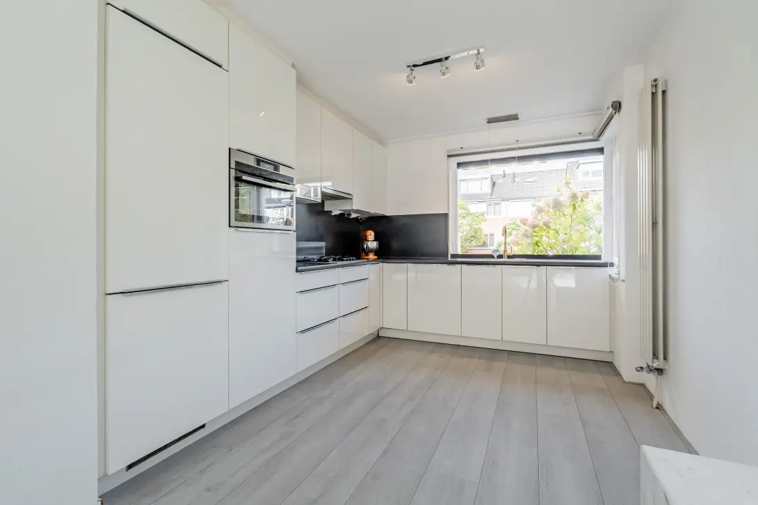 Binnen tref je een verzorgde woning met Nolte-keuken (2015), designradiatoren en een dakkapel aan de achterzijde. Aan de voorzijde is een beschut zitje/patio voor de avondzon; achter ligt een diepe tuin met vijver – een fijne plek om te ontspannen en te spelen. Scholen (waaronder een internationale), sportvoorzieningen in de wijk en het winkelcentrum zijn op korte afstand. Op zolder is recent aan de voorzijde een extra dakkapel geplaatst en is een tweede badkamer gerealiseerd, waardoor de zolder als volwaardige verdieping te gebruiken is.