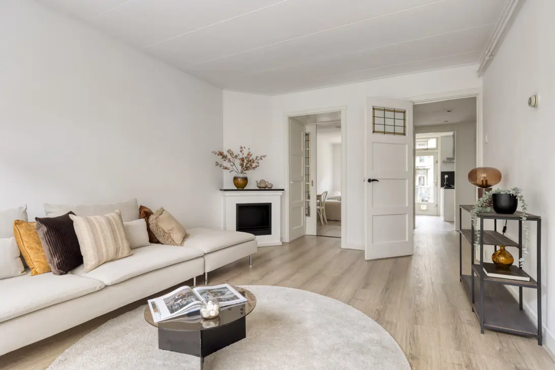 Stap binnen en laat je omarmen door het warme, uitnodigende karakter van dit appartement. Zodra je door de voordeur loopt, brengt een lichte en sfeervolle hal je naar de verschillende vertrekken. De woonkamer aan de voorzijde is ruim en heerlijk licht dankzij de elegante erker, die niet alleen een fijne plek is om te ontspannen maar ook perfect uitzicht biedt op de straat. Of je nu na een lange werkdag op de bank ploft of vrienden ontvangt: hier voelt het altijd als thuiskomen. Aangrenzend vind je een veelzijdige zijkamer, ideaal als thuiskantoor, logeerkamer of speelruimte voor de kleintjes.