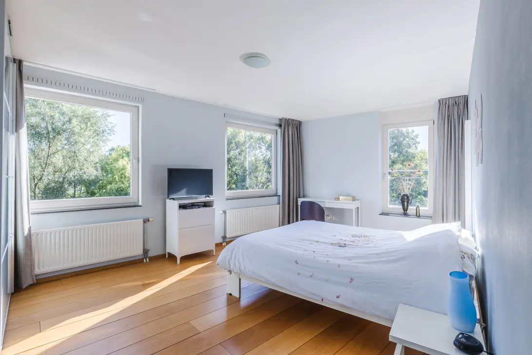 De grootste slaapkamer circa 18 M2 heeft een hoekligging op het noordoosten; biedt veel licht en is voorzien van een ruime kledingkast.