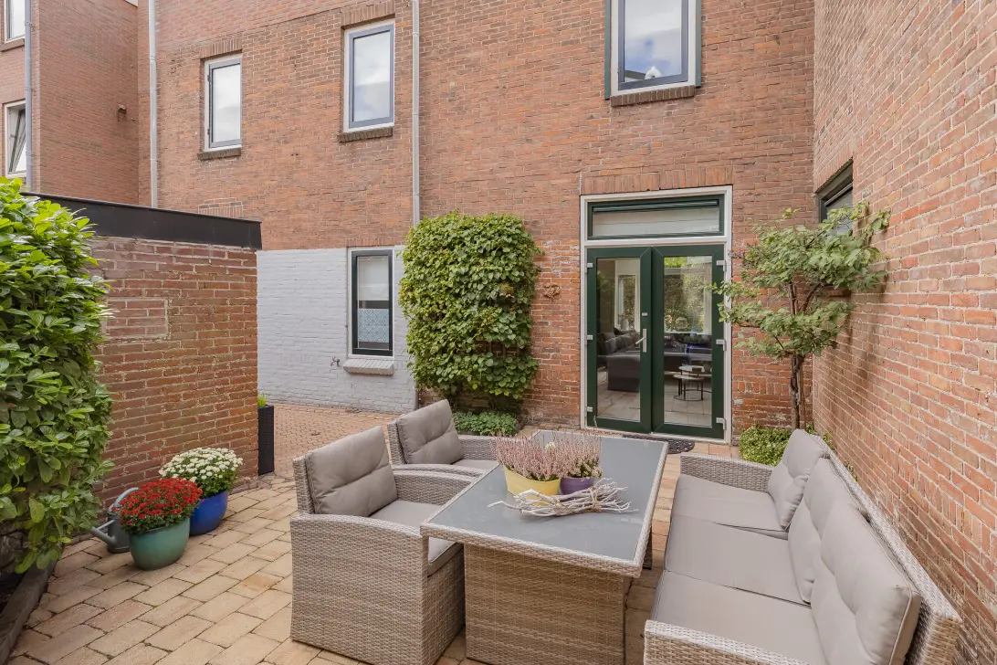 Daarnaast een flinke voortuin (met heel veel privacy dankzij een grote groene haag) en een fijne, over de breedte van de woning lopende achtertuin met stenen schuur en achterom. Loop door deze woning en verbaas je over de ruimte en het licht!