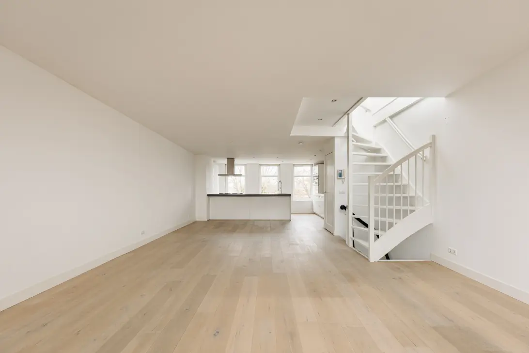 Zeer royaal -en licht dubbel bovenhuis van circa 136m² met een indrukwekkend dakterras van circa 43 m², vier volwaardige slaapkamers en een complete woonverdieping bovenin, is dit een huis dat ruimte, comfort en stedelijke sfeer moeiteloos combineert.