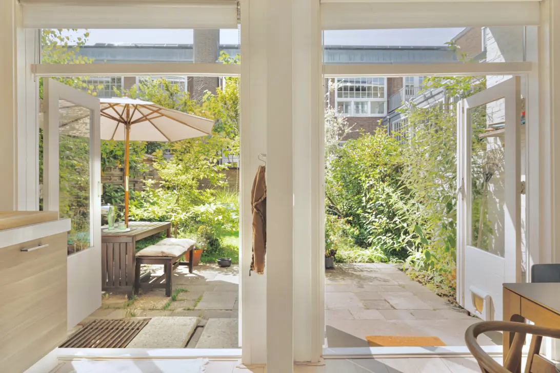 - De dubbele openslaande deuren leiden naar de zonnige achtertuin – ideaal voor BBQ’s, diners of simpelweg genieten van de zon;