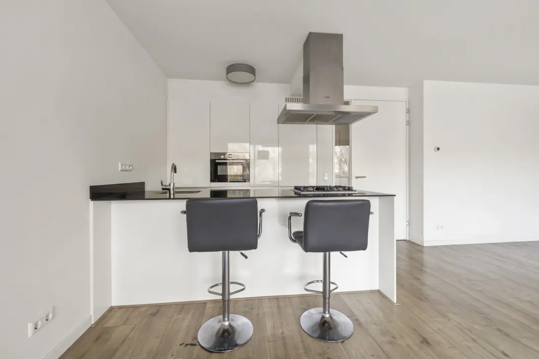 Het appartement van 78 m² is voorzien van een ruime woonkamer, een moderne keuken met luxe Bosch inbouwapparatuur en twee schuifpuien welke beide toegang bieden tot de balkons op het westen. Door de vele en grote raampartijen en het hoge plafond is het een prettige en lichte woning. Achter het appartementencomplex en op eigen terrein beschikt u over twee parkeerplaatsen en is er een afsluitbare fietsenstalling.