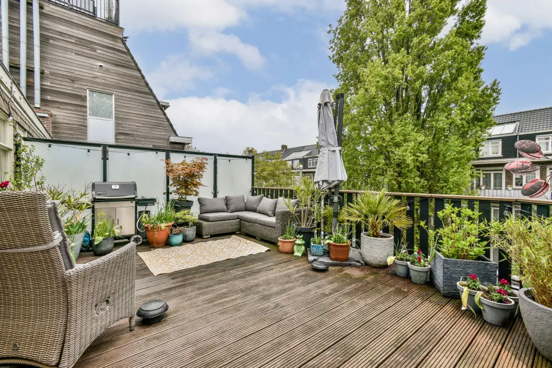 Meerdere buitenruimtes, waaronder een balkon en een dakterras op het zuidwesten